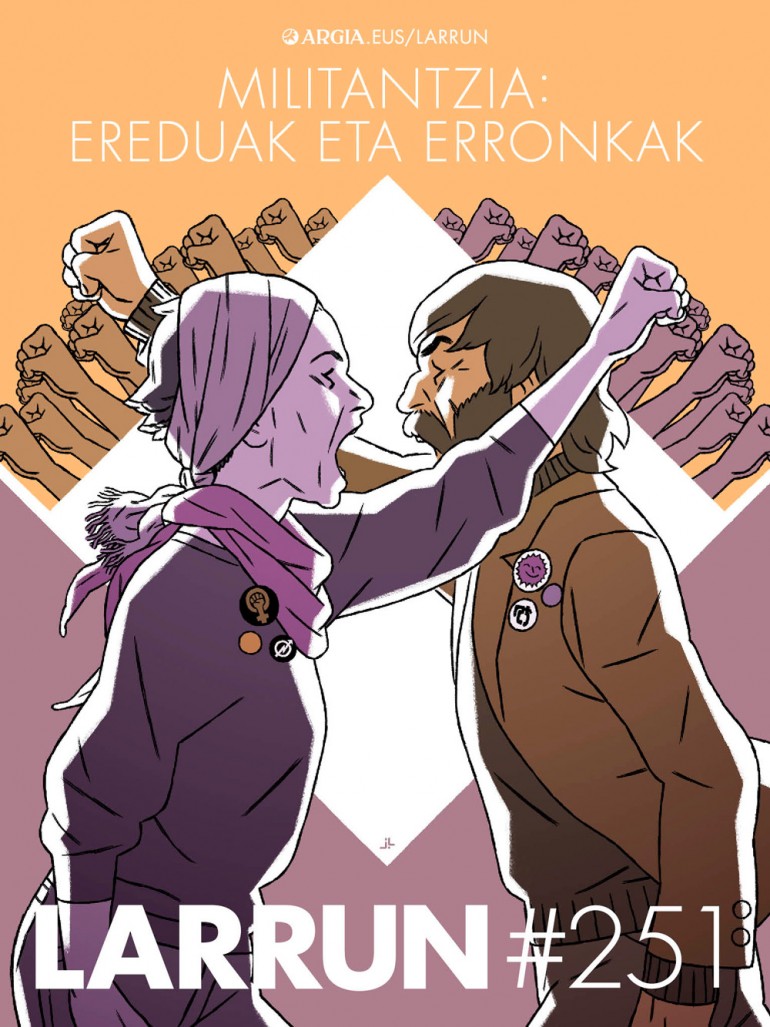 Konpromisoak lausotu egin direla dio Hidalgok, “egoera lasaitzearen” ondorio litzatekeena maila batean. Borroka armatuak eta bere iruditeriak –bizitza literalki arriskatzen duten militanteen existentziak, presoak, errepresioak...– konpromiso maila handiak eta sakrifizio oso eskuzabalak elikatu ditu urteetan herrigintzan, baita ezker abertzaletik kanpo ere. Baina beharra bertute bihurtu da askotan, eta militante sakrifikatuaren eredua oso maskulinizatua egon da. “Militante estereotipo horri, gizon, indartsu, ahuleziarik erakusten ez duena, feminismoak egin dio kristoren ekarpena” dio Hidalgok. Hariari heldu dio Ansak: “Duela bospasei urte, militantzia eredu klasiko hori esplizituki zalantzan jartzea gaizki ikusita zegoen. Azken urteetan zenbait gauza politizatzea lortu da: zurruntasuna eta malgutasunaren arteko oreka, proiektua-taldea-nia hirukia, zaintzaren lanketa...”. Eredu hori eraldatzea lortu den zalantza du, halere: “Diskurtsoan bai, baina erlazionatzeko eta boterea praktikatzeko moduetan zenbait dinamika ez dira asko aldatu”.
