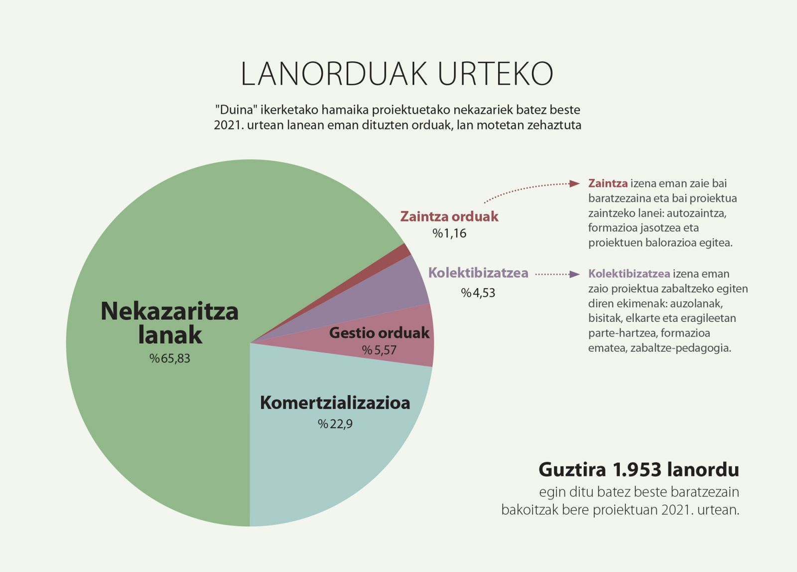 Biolur elkarteak eta Euskal Herriko Unibertsitateak (EHU) "Duina" ikerketa burutu dute (hemen aurkezpenaren kronika), besteak beste, baratzegintza ekologikoko lan orduak zehatz zenbatzeko eta barazkien kostu prezioak kalkulatzeko. Horretarako, baratzegintza ekologikoko 11 proiektuk 2021. urtean zehar lan bakoitzari eskainitako orduak erregistratu dituzte: honela neurtu dute zenbat ordu eskaini dizkion baratzezain bakoitzak baratzeko lanari, salmentari, gestio lanei, proiektua kolektibizatzeari (bisitak hartzeari eta bere esperientzia azaltzeari, esaterako) eta zaintza lanei (formazioa jasotzeari, proiektuen balorazioari, esaterako). Horrekin batera, proiektu bakoitzaren sarrerak, gastuak, amortizazioak eta maileguak ere aztertu dituzte. Baita barazki bakoitzak baratzean okupatu duen azalera, jasotako uzta eta saldutako kopuruak ere. Ikerketan parte hartu duten hamaika proiektuen arteko elkarlana eta konfiantza handia izan da, bakoitzaren sukaldeko datu ekonomiko guztiak partekatu baitituzte besteekin gardentasun osoz. Datu hauek jaso eta interpretatzeko Biolurreko teknikarien eta EHUko ikerlarien (Mirene Begiristain eta Aintzira Oñederra) laguntza eta gidaritza izan dute eta trukean, ikerketa kolektibo honi esker datutara eraman dute urteetako esperientziatik ezagun zaien eguneroko errealitatea: bakoitzak proiektuari zenbat ordu eskaintzen dizkion, urtean ateratzen duten marjin garbia zenbatekoa den, merkaturatze bide bakoitzak zenbat lan eta nolako irabaziak ematen dizkion bakoitzari eta lantzen duten barazki bakoitzaren ekoizpen kostua zenbatekoa den. Ikerketan parte hartu duen proiektu bakoitzak bere bideragarritasuna hobetzeko txosten teknikoa jaso du prozesuaren amaieran. Eta guztien datuekin ondorioen txosten bateratua ere garatu dute. Jarraian azalduko dugu ikerketa honen datuek erakusten duten baratzegintza ekologikoaren panorama: