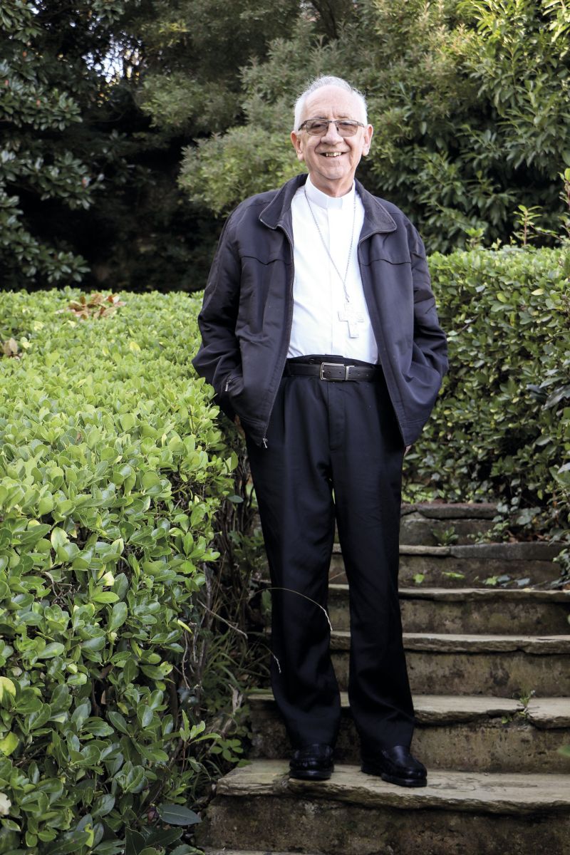 Bai, egun on [euskaraz, berak ere]. Gogoan dauzkat zenbait hitz euskarazkoak, gurasoek euskaraz hitz egiten zioten-eta batak besteari, eta guk ere zerbait ikasi genuen. Euskara ez zitzaigun arrotza, alegia. Egun on… aita… ama… eskerrik asko… ogia… ondo lo egin… ipini zopa… Halakoxeak. Euskal Herrian ibili naizen honetan, bestalde, Legazpin izan naiz –hemen naizen guztietan bezala, Legazpin, hangoxeak baikenituen gurasoak–, eta meza esan dudanean “Eskerrik asko, Jauna” kantatu dut. “Zuk badakizu kantu hori!”, esan zidaten, eta nik: “Buruz ez, baina letrak aurrean ditudala, bai, etxean kantatzen zuten-eta. Gauza txiki horiexek dakizkit euskaraz, askoz gehiago ez.