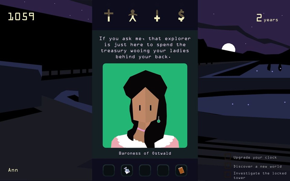 Justiziaz gobernatzea edo loria pertsonal epikoak jazartzea baino gehiago, Reigns: Her Majesty-tik igarotzen diren erregina guztien helburu nagusia askoz oinarrizkoagoa da: tronuan ahalik eta urte gehien irautea. Hitzorduen aplikazio mugikorrak gogorarazten dituen mekanika baten bidez, jokoak onartu edo atzera botatzeko eskatzen digu gortean dabiltzan pertsonaia anitzek egiten dizkiguten proposamenak, baina, hori bai, beti ere erresumako botere faktikoen nahiei eta sentiberatasunei erantzunez, gure erregealdia luzatu nahi badugu behintzat. Leigh Alexanderren lumak, egungo bideo-jokoaren idazlerik interesgarrienetako batek, gainera, geruza feminista eta kontradiskurtibo oso bat gehitzen die bere ehun parte-hartzaileengandik sortzen diren istorioei, eta gozamenerako elementu bat gehiago dira obra dibertigarri honetara hurbildu nahi duenarentzat.