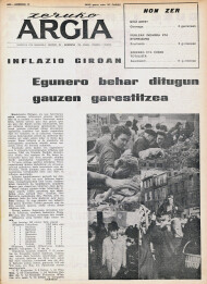 Zehazki dena azaltzea luzeegia litzateke. Rikardo Arregik aipatu ohi zidan kezka hura gogoraraziko dut hemen: "marjinalismo"a. Euskal Herrian urtean 40 mila miloi pezeta baino gehiago ematen du agiriko zergatan. Hots, Euskaltzaindiak berak bere ezkeneko Agirian (1973-X-26) hau dio: "(Diru-kutxan) dagoena: 95.587,18 pezeta"... Hauxe da egoeraren irudia! Edozein lekutan gertatzen denaren arabera geure zerga-kopuruaren %3 edo %4 baizik erabiliko ez bagenu, mila miloi pezeta izango genituzke urtean euskal irakaskintza eta euskal jakintzak oro bultzatzeko. Soluziorik? Badakigu guk biok. Hanartean ikastolak nola ordaintzen diren badakigu; euskal liburuak nola argitaratzen diren ere bai. Nola bizi dira euskal kulturaz arduratzen diren gizonak? Badut nik neronek horren berri... Zenbat irabazten dute andereñoek? Hobe dugu isildu txitxareak ez nahastutzeko! Nola nahi dugu, beraz, euskara benetan piz dadin? Non dira euskal kulturaz osoki emanaz bizi daitezkeenak?