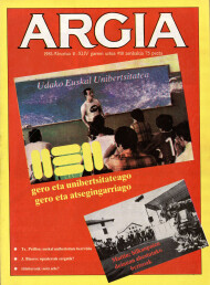 A.: Eztabaida bat sortu zen, alegia, adibidez Israelgo unibersitatea hartuz han gehiena inglesez egiten dela diote eta astakeria litzatekecla euskara dagoen mailan egonik, goi mailara jotzea. EGB eta ikastoletan oraindik erdi bilutsik gaudenean Unibertsitate gaiaz arduratzea. Zerbait aztertu al duzue hau?