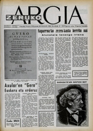 Jokolari au Argoitia beren ulle gorrizke eta iri-barria beren espanetan dabela, mutil alai ta apabeda, bape arrokeri bakua ta gazte lagun-artekua. Beraz alkar-izketa bat egiteko asmuaz, beren etxera zuzendu nintzan, bana eneban aurkitu, ta, or urrengo egunian non jatortan nere lantegira zernai-dodan itaunka, ta apal-apal nenk itanduten dautsatenari erantzuteko gertuta.