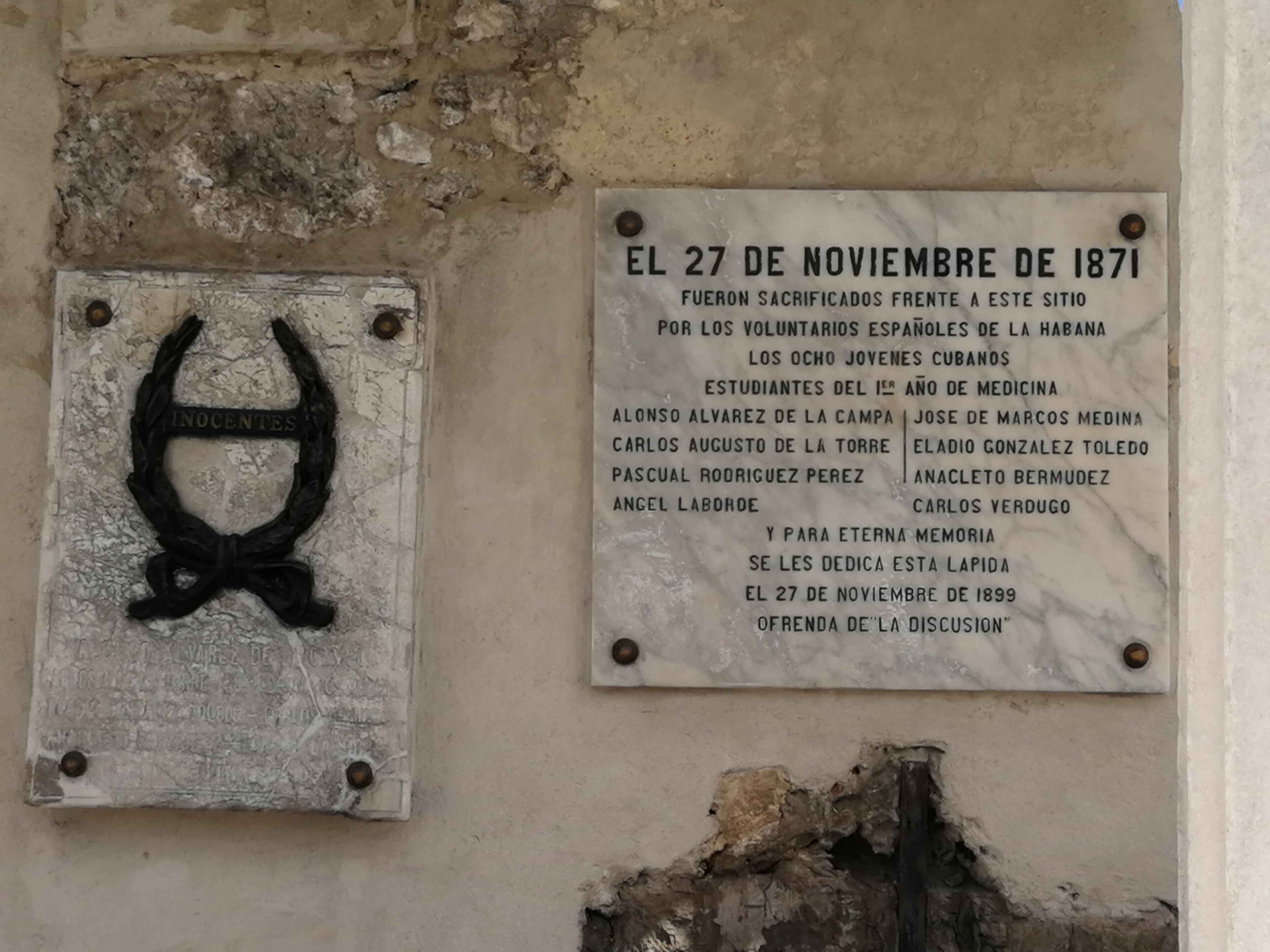 Espainiarrek Habanako zortzi medikuntza ikasle exekutatu zituzten Kuban, eta beste dozenaka espetxeratu. Bi gerra kontseilu egin zitzaizkien, gezurretan oinarriturik Gonzalo Castanón kazetari espainiar anti-kubatarraren hilobia profanatzea egotzita. Fusilatu guztiak 21 urtetik beherakoak ziren. Inocencia filmean jaso dute Kubako historiako kapitulu beltz hartan gertatua: “Espainiak inozentzia erail zuen eguna”.