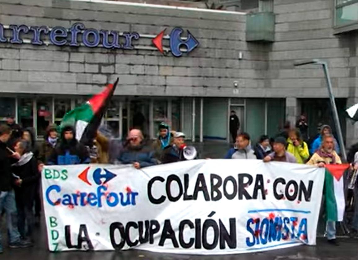 Boikot, Desinbertsioak eta Zigorrak taldeko kideak Israel Palestinan egiten ari den genozidioa salatzeko Iruñeko Mendebaldeako auzoan dagoen Carrefour merkatalgunean elkartu dira. Kate honek Israelgo Electra Consumer eta Yenot Bitan enpresekin akordioak ditu, eta kate horiek lurralde okupatuetan kokatzen diren kolonietan presentzia dute.