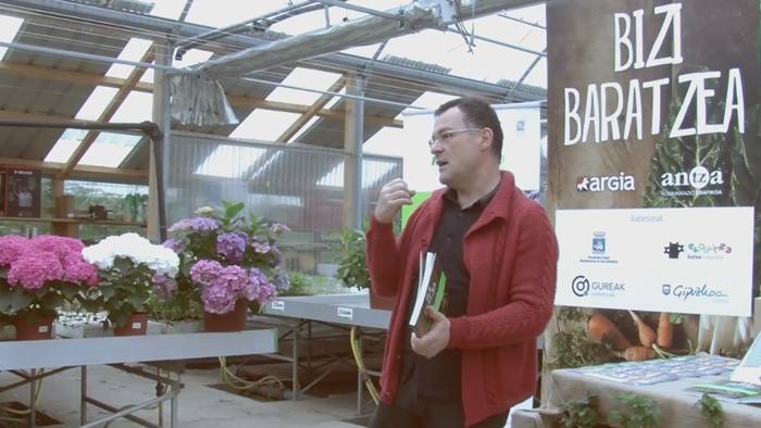Jakoba Errekondoren hitzaldia Hernaniko Karabelekon, ARGIArekin batera argitaratu duen "Bizi Baratzea" bere azken liburuaren harira.