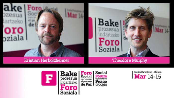 Euskal Herriko bake prozesua indartzeko Foro Sozialaren barruan Kristian Herbolzheimer eta Theodore Murphyren hitzaldia.