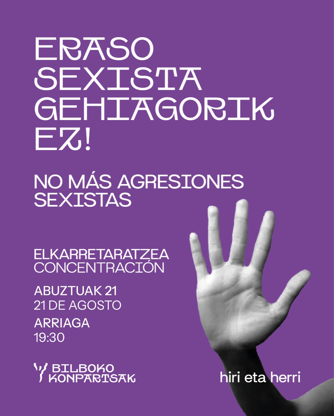 Bilboko Konpartsen Federazioak, aldiz, ilusio hartako sugarra pizturik mantentzen du: gogotik egiten dugu lan urte osoan eta gure helburua jaiak -Aste Nagusia, San Tomas, inauteriak eta auzoetako jaiak- herritarrek herritarrentzat eginak izatea da. Elkarbizitza posible dela uste dugu, ezberdintasunetik eta iritzi aniztasunetik. Instituzioek bakarrik antolatutako jaien ereduarekin konforme ez gaudenok konpartsetan biltzen gara. Konpartsok ezberdinak gara, jaia gara