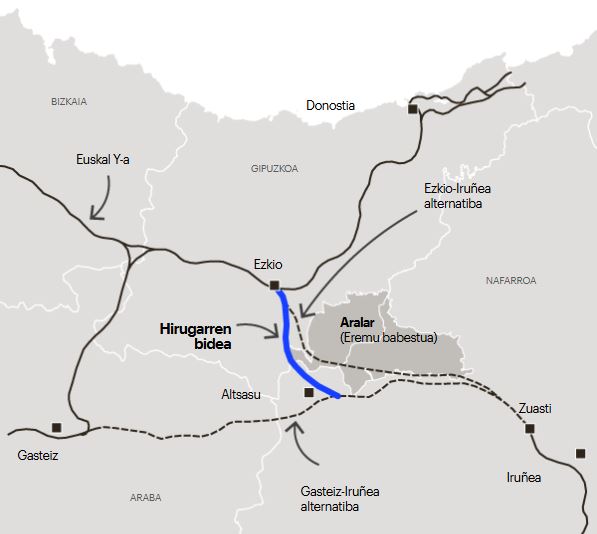 Ulertezina da joan den mendeko 90eko hamarkadan diseinatzen hasi zuten proiektu batek (obrak 2006an hasi ziren euskal Y-an eta 2011n Nafarroan), 2025ean oraindik ez duela bi tarte arteko loturarik planteatu ere egin. Horrek adierazten digu Euskal Herriko inoizko azpiegitura suntsitzaile, xahutzaile eta antisozialenak erakusten duen inprobisazio- eta lardaskeria-maila. Eta horrekin batera, proiektuaren helburu nagusia obra bera dela adierazten digu, onura izugarriak ekartzen baitizkie bankuei, eraikuntza-enpresa handiei eta klase politikoari, zeina ohiko hozkaden bidez, administrazioan betikotzen da, behin eta berriz frogatu den bezala.