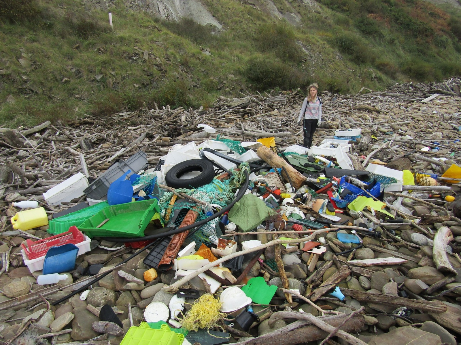 AZTIk ohartarazi duenez, Bizkaiko golkoko hego-ekialdeko kostaldeko urak plastikoak batzeko puntu beroa dela, eta Mediterraneo itsasoko edo zaborra gehitzeko beste eremu batzuetako mailen antzekoak dituela. Argazkia Deba eta Zumaia bitarteko marearteko gunean egindakoa da, Eguzkik 2019an antolatutako hondakin-bilketa batean.