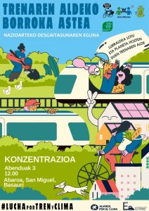 Horregatik, tren publiko, sozial, ekologiko, eraginkor eta jasangarri baten alde egiten dugu. herritarren beharren araberako ordutegiak eta prezio eskuragarriak dituena, gure lurraldea egituratu eta planeta hozten lagunduko duena.