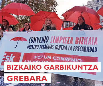 ESK-tik dei argia eta irmoa egiten dugu abenduaren 17ko eta urtarrilaren 14ko eta 15eko grebetan parte hartzeko. Murrizketarik gabeko Bizkaiko garbikuntzako hitzarmen duin baten alde!