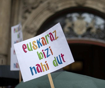 Euskara identitatea, eskubidea eta etorkizuna da. ESK-n benetako konpromisoa defendatzen dugu guztiok gure hizkuntza askatasunez eta oztoporik gabe bizi, ikasi eta erabili ahal izan dezagun.