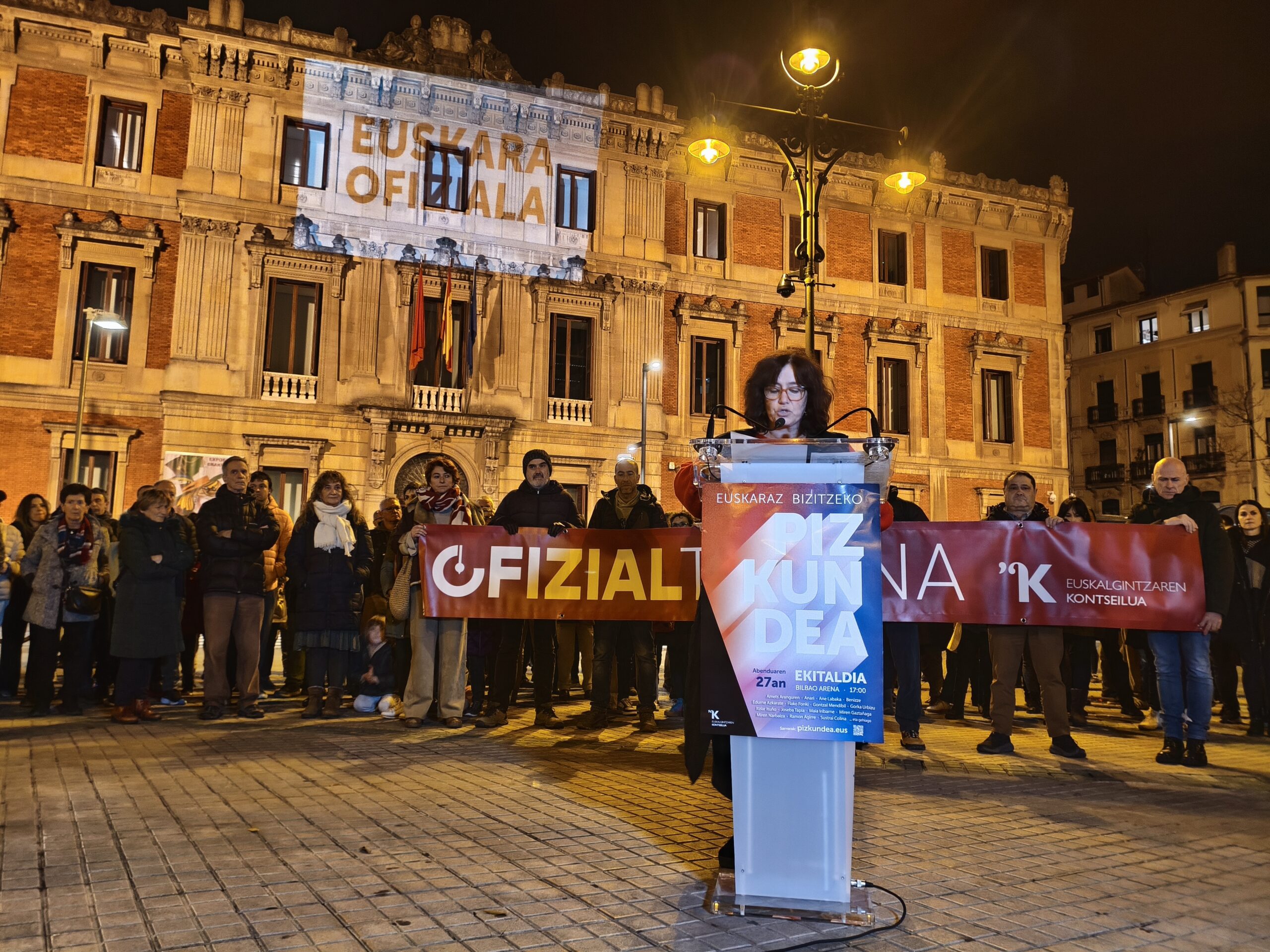 Gaur, Nafarroako Parlamentuaren aurrean egindako elkarretaratzean, Euskalgintzaren Kontseiluak indar politikoei eskatu die Foru Amejoramenduaren inguruko eztabaida baliatu dezatela euskarari berdintasun estatusa emateko Nafarroa osoan. Halaber, euskaltzale guztiak deitu ditu abenduaren 27an indar erakustaldi bat egitera, Bilbon egingo den ekitaldian. Ekitaldiaren inguruko informazio guztia www.pizkundea.eus webgunean aurkitu daiteke.