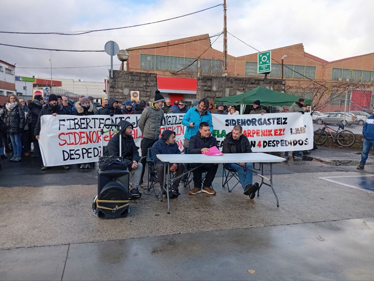 Jarraipen zabala Gasteizko Sidenorreko lehen greba egunean, bidegabe kaleratutako lau lankideak berriro lanera itzul daitezen eskatzeko