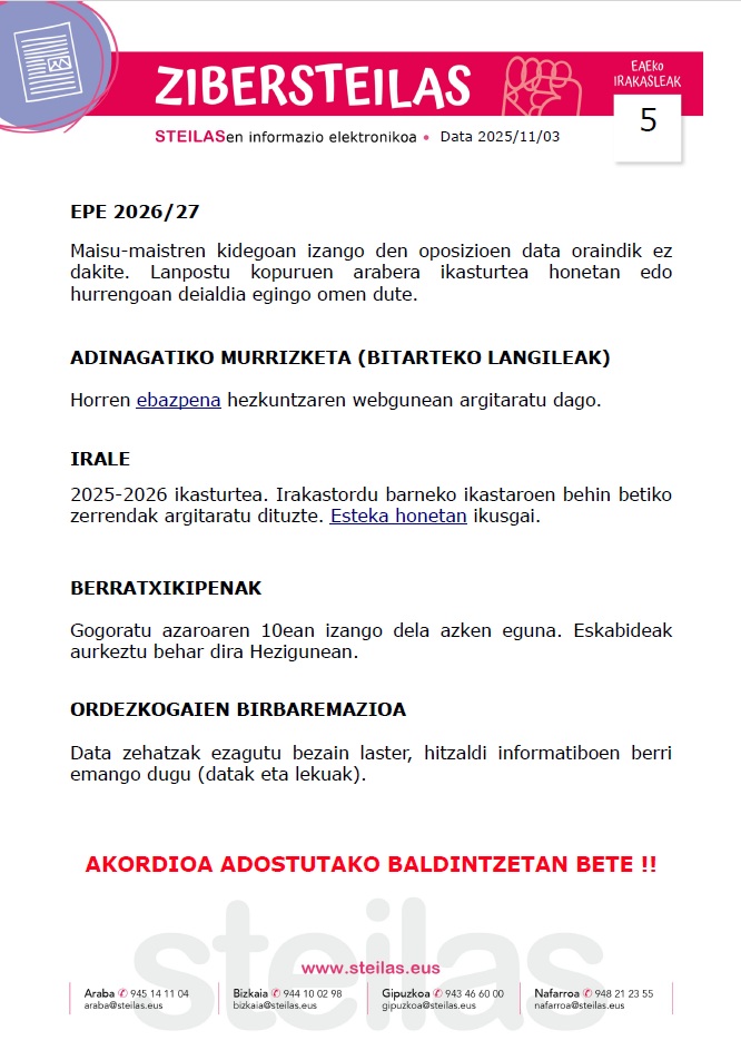 Zibersteilas 5: EPE 2026/2027, adinagatiko murrizketa, IRALE, berratxikipenak eta birbaremazioa