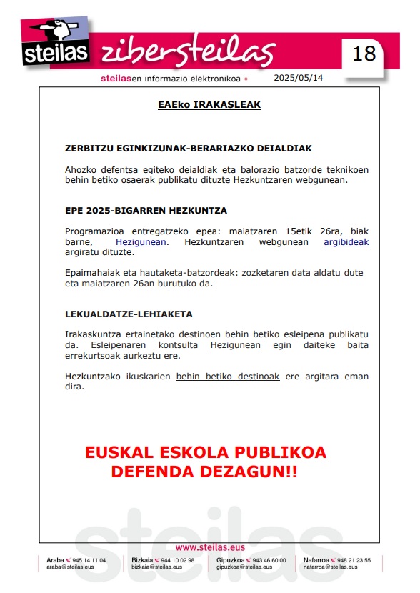 The post Zibersteilas 18: zerbitzu eginkizunak-berariazko deialdiak, EPE 2025 eta lekualdatze-lehiaketa appeared first on Steilas.