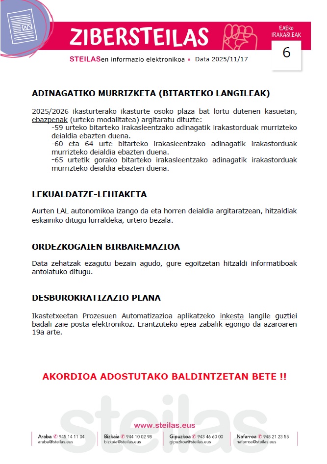 The post Zibersteilas 6: adinagatiko murrizketa, lekualdatze-lehiaketa, birbaremazioa eta desburokratizazio-plana appeared first on Steilas.